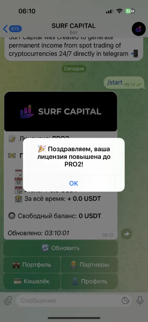 Surf Capital делает торговлю на рынке криптовалют доступной для каждого. Более того, начать работать с ботом можно уже сегодня, чтобы ваш капитал начал приносить прибыль. Если вы ещё не видели бота в действии, обязательно посмотрите это видео и убедитесь сами в его возможностях!