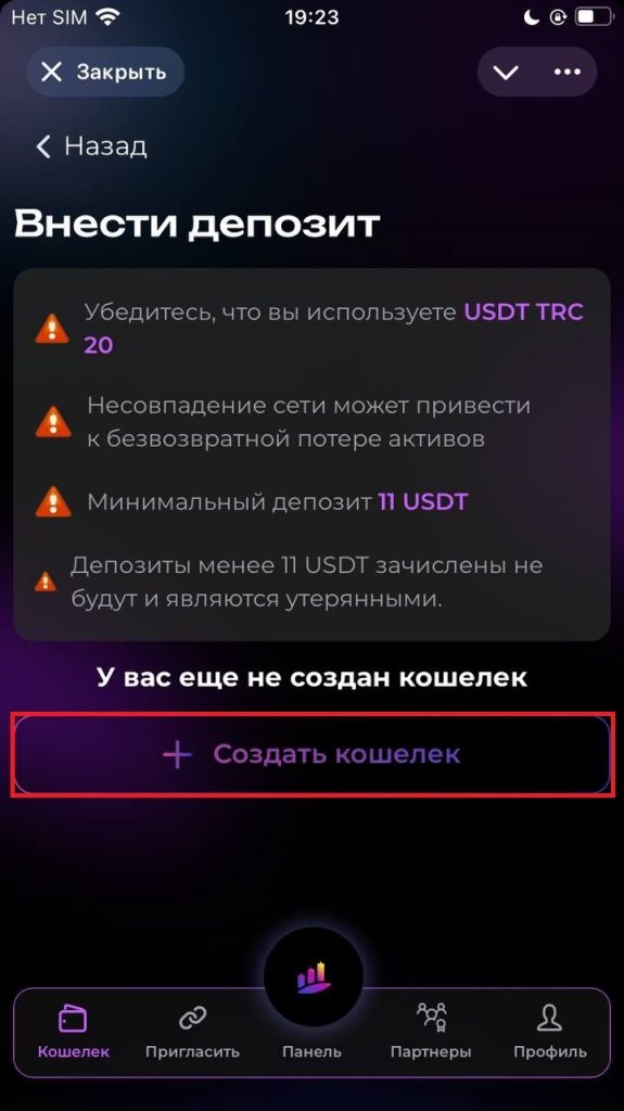 Если вас ещё нет личного адреса, нажмите “Создать кошелёк”.