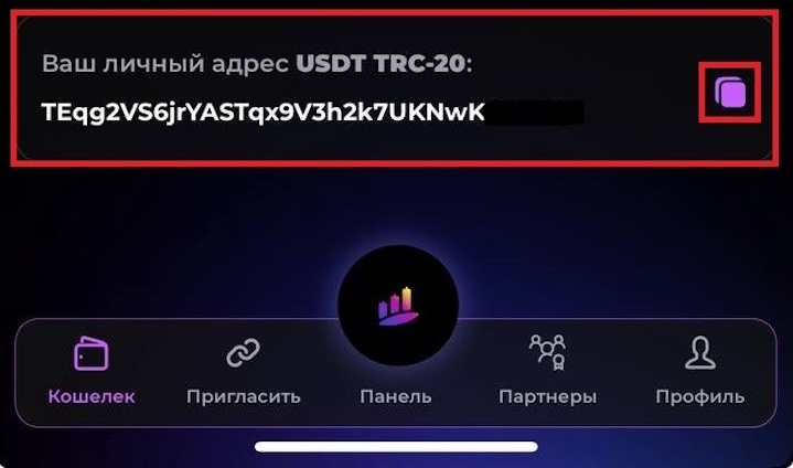 Бот предоставит вам уникальный адрес кошелька для пополнения. Скопируйте его.
