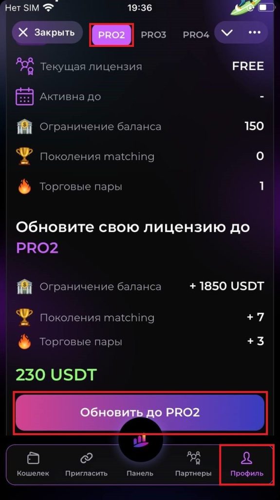 2. В меню приложения выберите раздел “Профиль” и выберите желаемую лицензию.